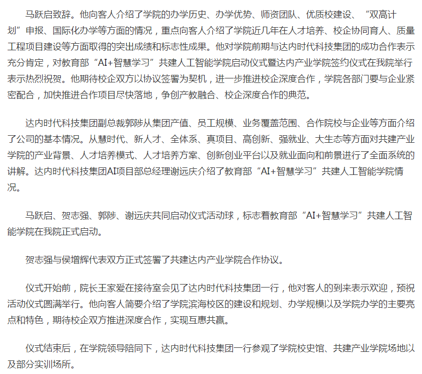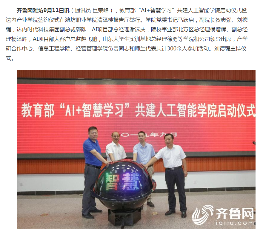 [齐鲁网]教育部“AI+智慧学习”共建人工智能学院启动仪式暨达内产业学院签约仪式在开云体育APP下载网址举行