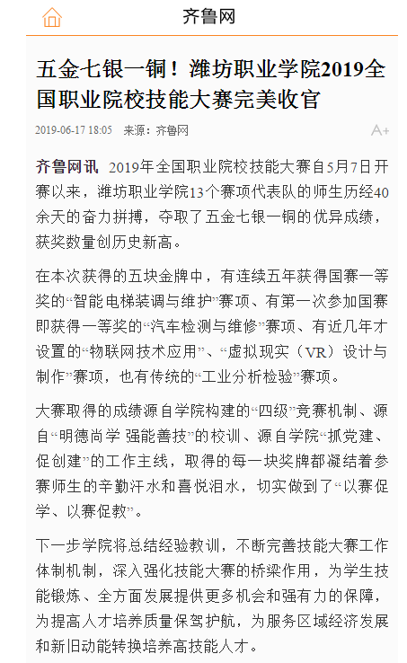 [齐鲁网]五金七银一铜!开云体育APP下载网址2019全国职业院校技能大赛完美收官