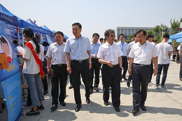 陈世华视察招聘会现场,并与参会企业亲切交谈,了解企业的用工需求,倾听企业负责人对就业工作的建议意见,并参观学院校史馆,听取宋桂言介绍学院办学基本情况特别是近年来招生就业取得显著成绩,对我院办学成效给予了高度评价。