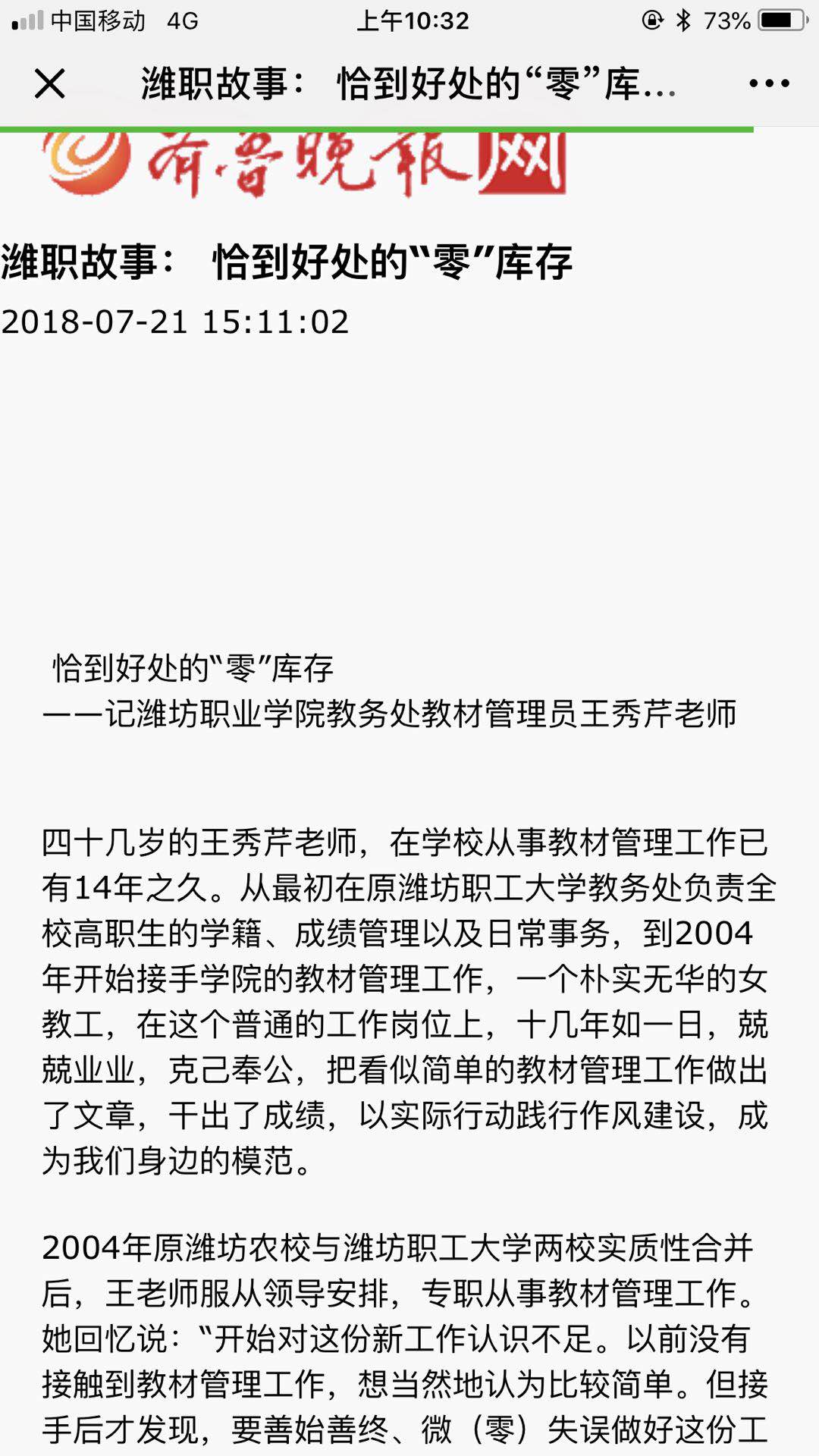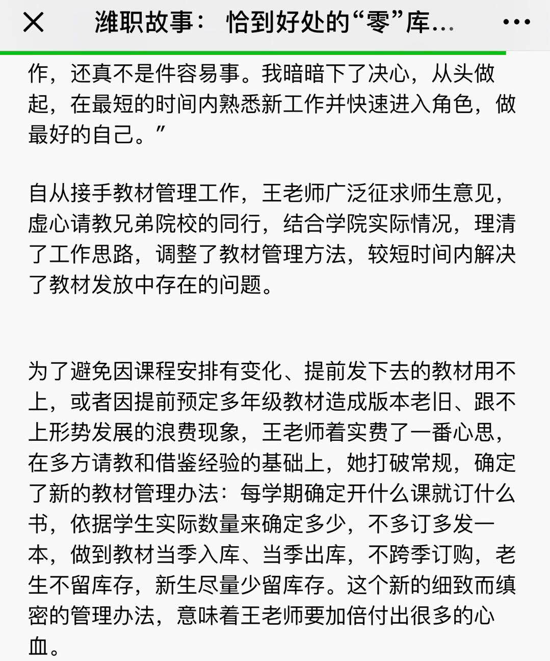 [齐鲁晚报]潍职故事:恰到好处的“零”库存——记开云体育APP下载网址教务处教材管理科王秀芹老师