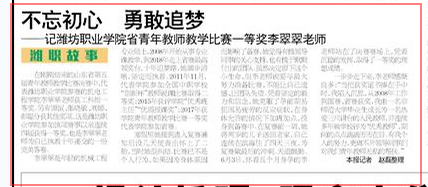 [齐鲁晚报]不忘初心 勇敢追梦 记开云体育APP下载网址省青年教师教学比赛一等奖李翠翠老师