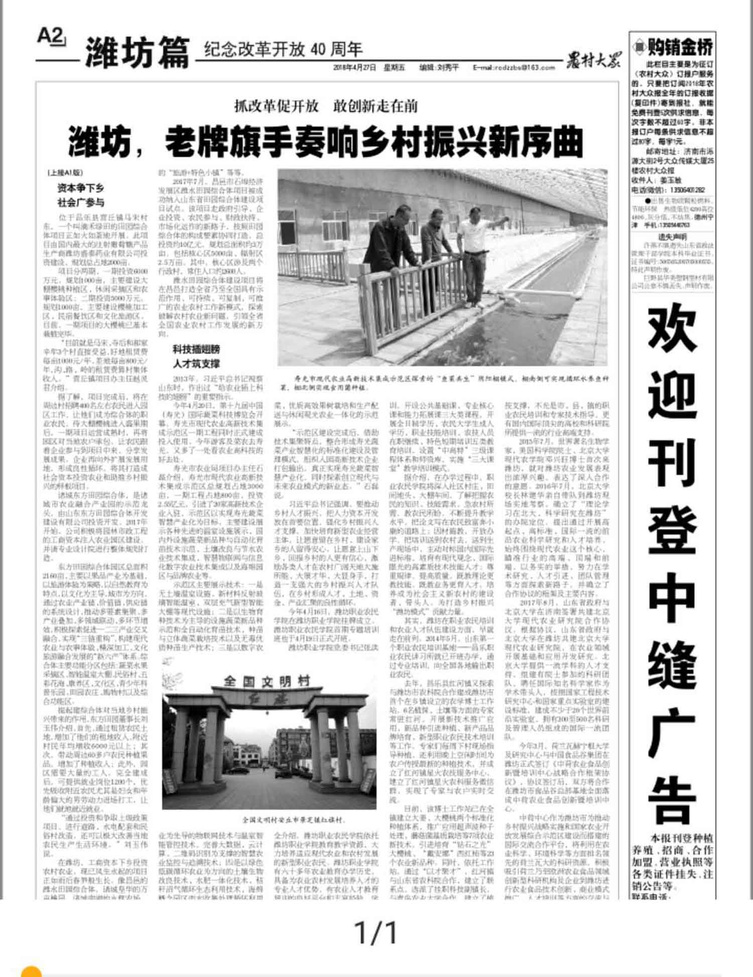 [大众日报农村版]潍坊,老牌旗手奏响乡村振兴新序曲