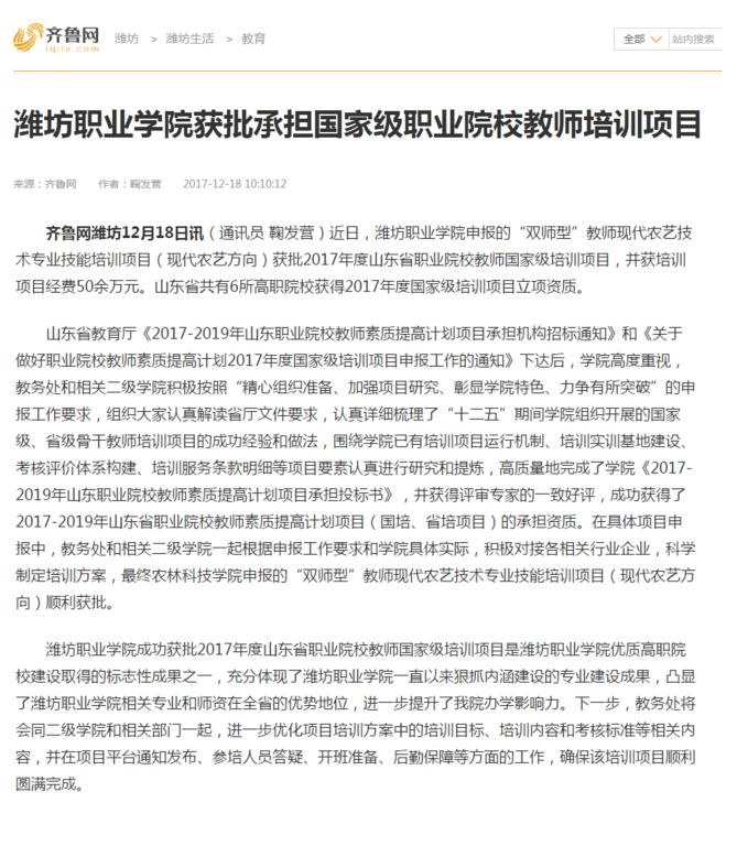 [齐鲁网]开云体育APP下载网址获批承担国家级职业院校教师培训项目