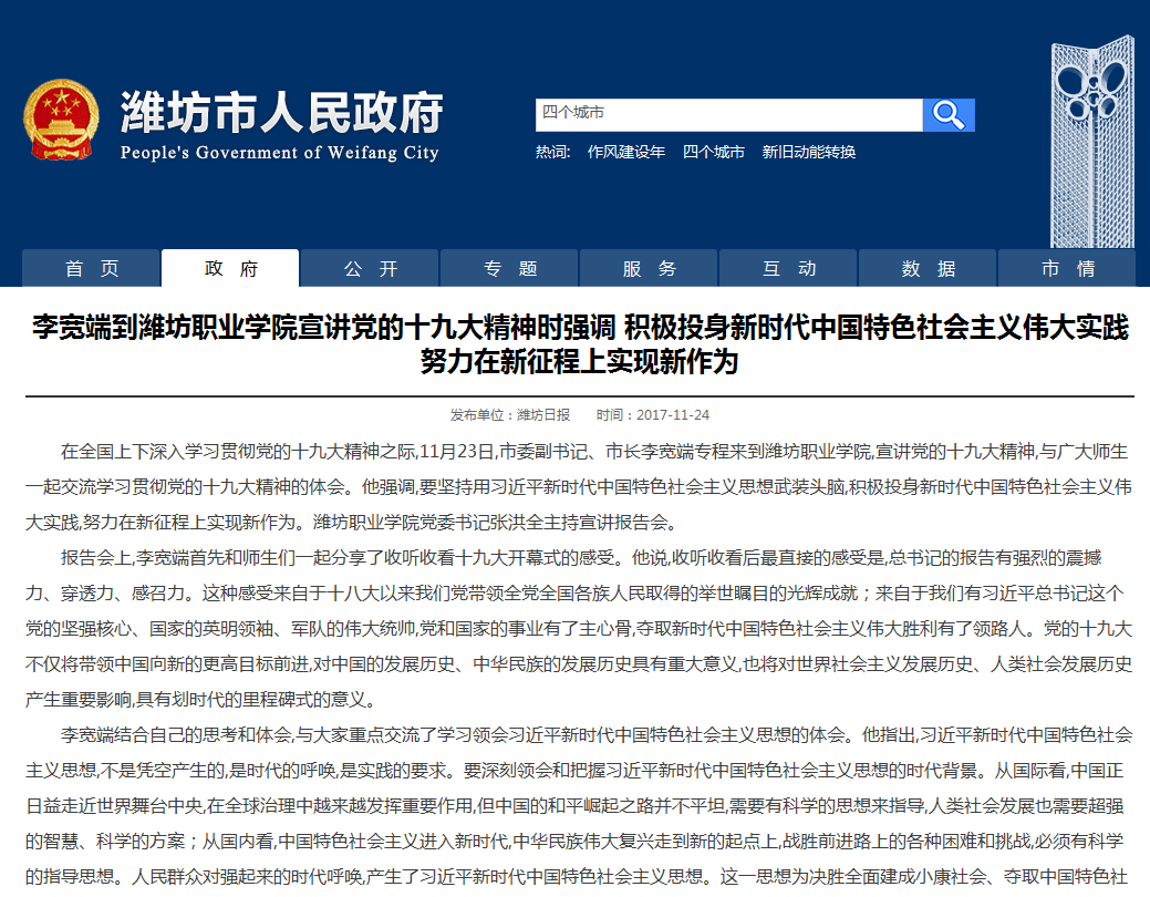 [潍坊市政府网站]李宽端到开云体育APP下载网址宣讲党的十九大精神时强调 积极投身新时代中国特色社会主义伟大实践努力在新征程上实现新作为