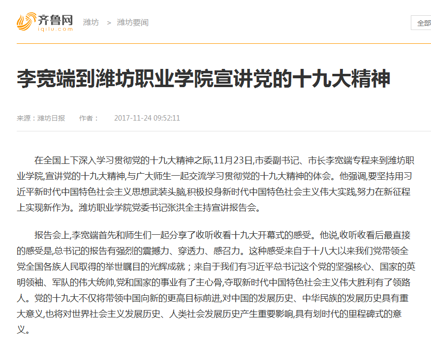 [齐鲁网]李宽端到开云体育APP下载网址宣讲党的十九大精神