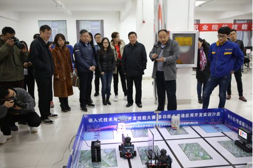 媒体采访团一行实地参观了学院办学成果展室,观看了学院专题宣传片,听取了学院办学情况介绍,现场参观了农林科技学院微景园施工和机电工程学院嵌入式理实一体化实训中心,仔细观看了园林微景园施工实训现场和多用途移动机器人开发与展示,与实训师生进行了深入交流,对开云体育APP下载网址实践教学进行了现场采访。