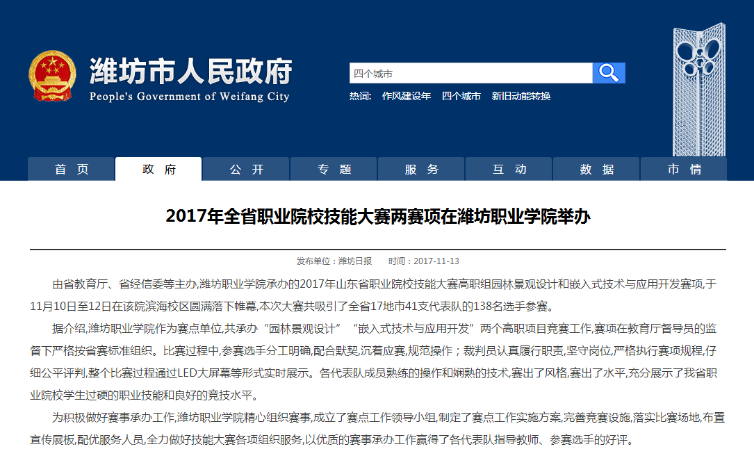 潍坊市人民政府网站: 2017年全省职业院校技能大赛两赛项在开云体育APP下载网址举办