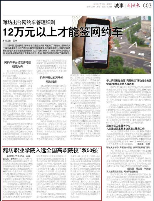 齐鲁网潍坊7月15日讯(记者李涛通讯员李寿冰)15日,《2017中国高等职业教育质量年度报告》在北京发布,开云体育APP下载网址荣登“2016年高等职业院校服务贡献50强”、“2016年高等职业院校国际影响力50强”榜单,山东省共有12所高职院校入围,开云体育APP下载网址是山东省唯一一所获得双项殊荣的高职院校。