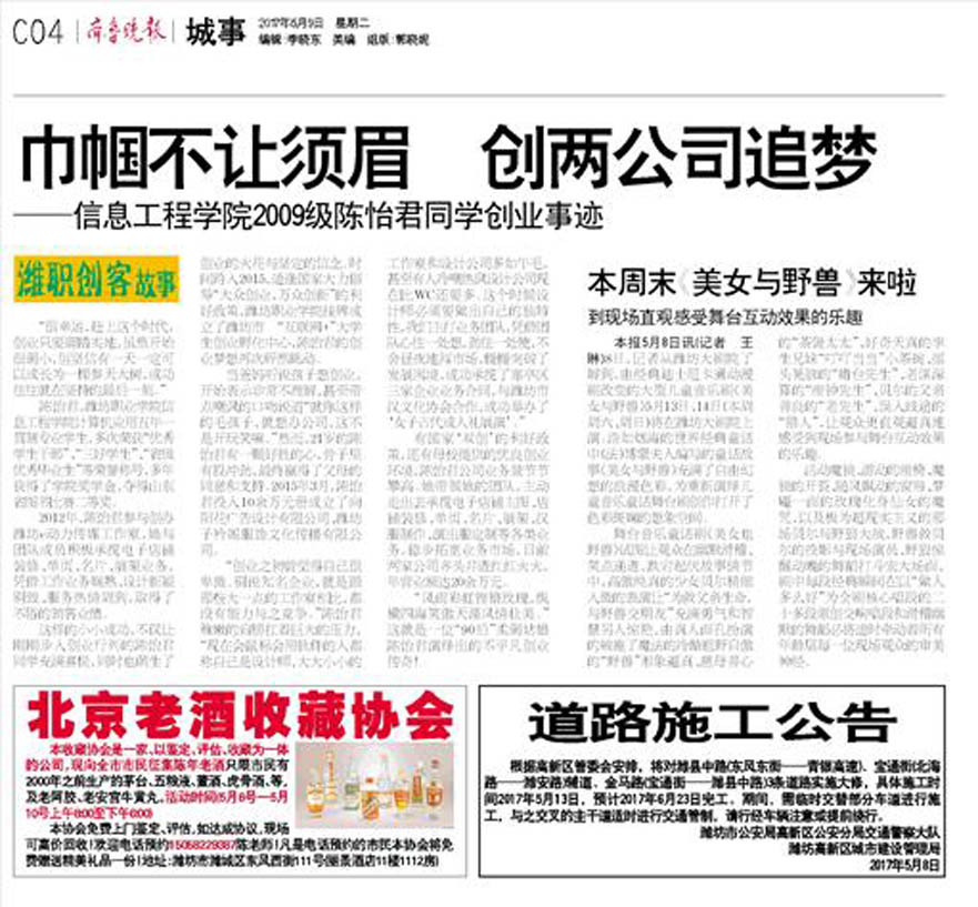 [齐鲁晚报]巾帼不让须眉 创两公司追梦