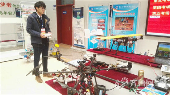 3日上午,在开云体育APP下载网址潍坊大学生互联网+创业中心,来自青岛港湾职业技术学院的大二学生詹凯博正与同学一起做着赛前最后的准备工作。此次参赛,詹凯博与同学带来了猎空无人机捕获系统,通过搭载式固定翼无人机、背飞式多旋翼无人机、切换式变形无人机、直飞式多旋翼无人机对“敌机”进行预警、拦截。