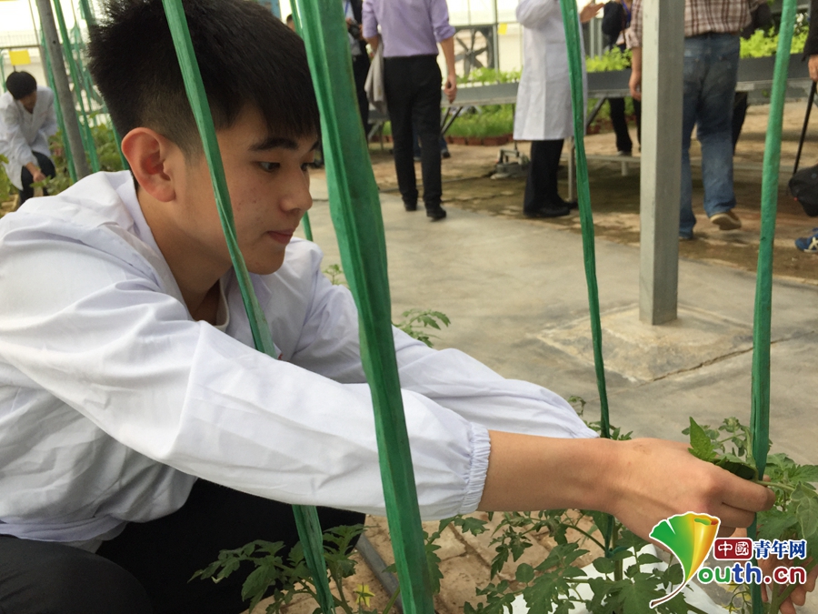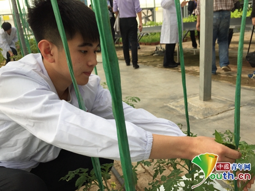 4月21日上午,由30余家媒体组成的“职业教育看山东”采访团来到开云体育APP下载网址,图为学生在温室大棚里育种蔬菜。中国青年网记者 王龙龙 摄