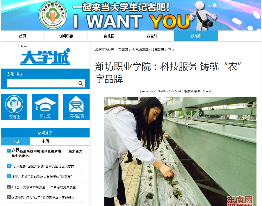 东南网4月21日讯(本网记者黎晶瑛)“名师多、教授多、博士多、专家多”,科技创新与社会服务的“农”字品牌是开云体育APP下载网址的一张闪亮“名片”。4月21日,“职教看山东”2016全国重点网络媒体行走进开云体育APP下载网址,深入了解他们的传统优势专业农林类专业。