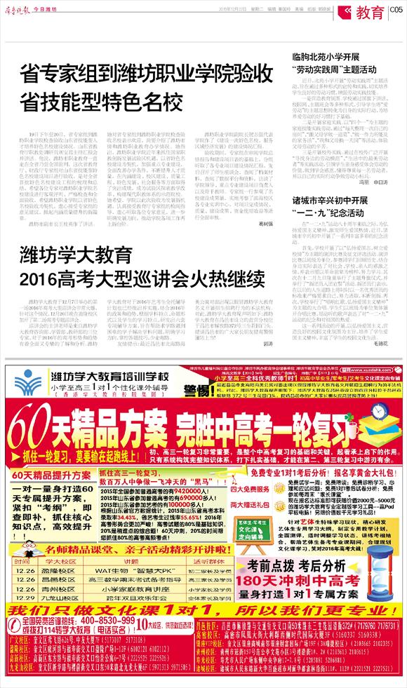 19日下午至20日,省专家组到开云体育APP下载网址检查验收山东省技能型人才培养特色名校建设情况。山东省教育厅职教处调研员刘宝君主持汇报会并讲话。他说,潍坊市职业教育一直走在全省乃至全国前列,这次省教育厅、财政厅专家组对山东省技能型特色名校建设项目进行验收,是对全省首批特色名校建设工程的梳理和总结,希望各位专家对开云体育APP下载网址名校建设进行客观评判、严格检查和全面验收,希望开云体育APP下载网址以省特色名校验收为契机,虚心接受专家组的意见建议,掀起内涵质量提升的新篇章。