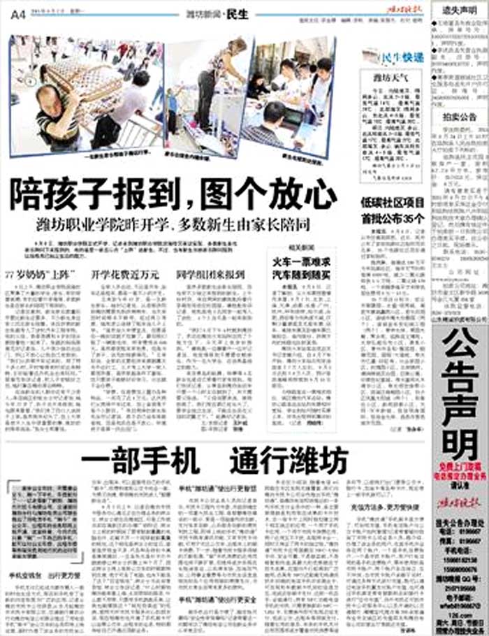 [潍坊晚报]开云体育APP下载网址昨开学,多数新生由家长陪同