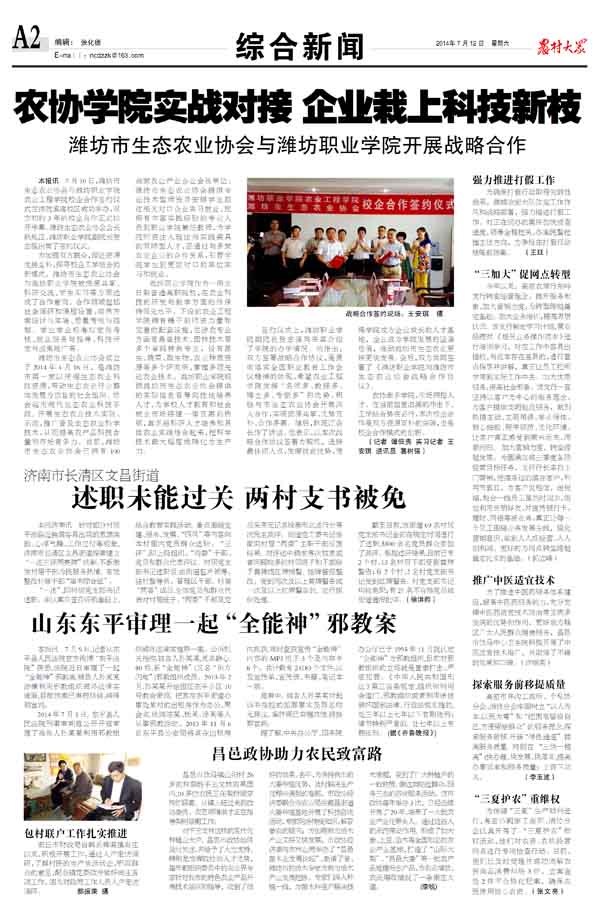 媒体潍职:[潍坊大众]农协学院实战对接 企业栽上科技新枝