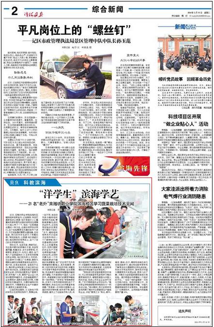 媒体潍职:[滨海日报]“洋学生”滨海学艺