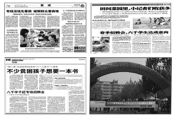 5月26日,由山东省人力资源和社会保障厅主办、我院承办的山东省2012年春季高校毕业生职业技术专场招聘会暨学院2012年学生顶岗实习校园双选会在我院奎文主校区举行。潍坊日报、潍坊晚报、潍坊电视台、齐鲁晚报等多家媒体对大会情况进行了报道。