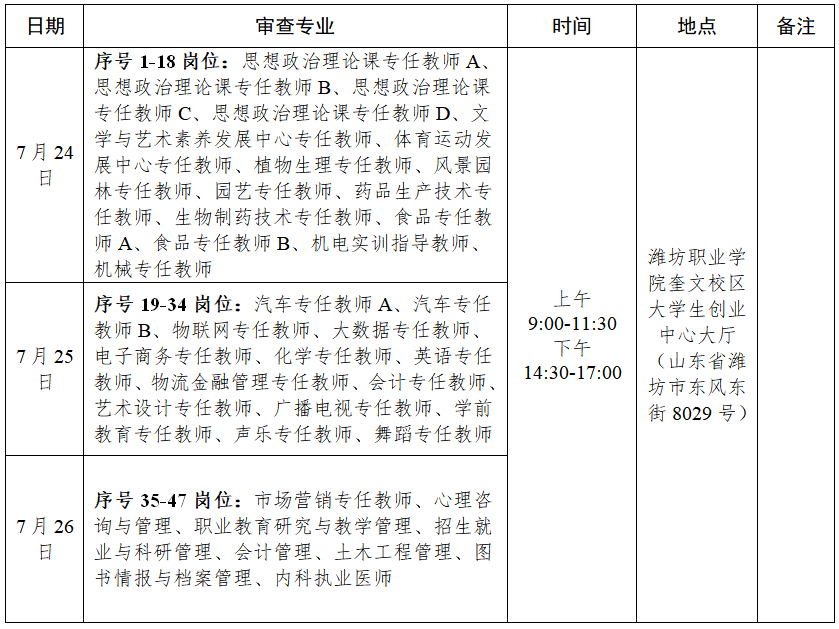 3.因疫情防控原因,根据网上报名初审情况,现场资格审查分岗、分批次进行,具体详见下表。