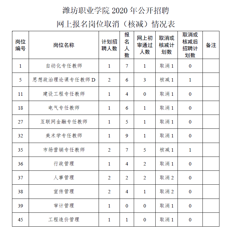 开云体育APP下载网址2020年公开招聘网上报名岗位取消(核减)情况表