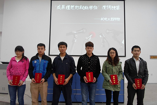 为了让2014年顶岗实习的学生踊跃参与到“百名创业者培养工程”活动中来,培养他们的创业就业意识, 4月10日下午,机电工程学院在滨海校区举办“我最理想的就业单位”演讲比赛。