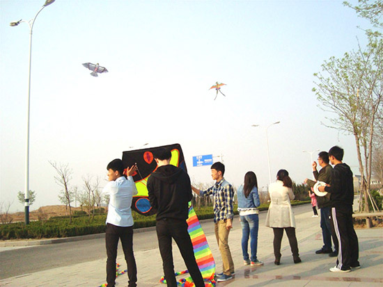 4月8日下午,信息工程学院举行了风筝放飞比赛。课外活动时间,班主任与同学们来到学院滨海校区北门广场开始了比赛。比赛以班级为单位,各位选手都拿出了自己的看家本领,长龙风筝、老鹰风筝、蝴蝶风筝、卡通风筝等飞翔在赛场上空,一会儿俯冲、一会儿快速爬升。选手们体会着驾驭风的感觉,非常惬意。本次比赛中选拔出的优秀选手将参加学院第一届风筝放飞比赛。(冯燕妮供稿)
