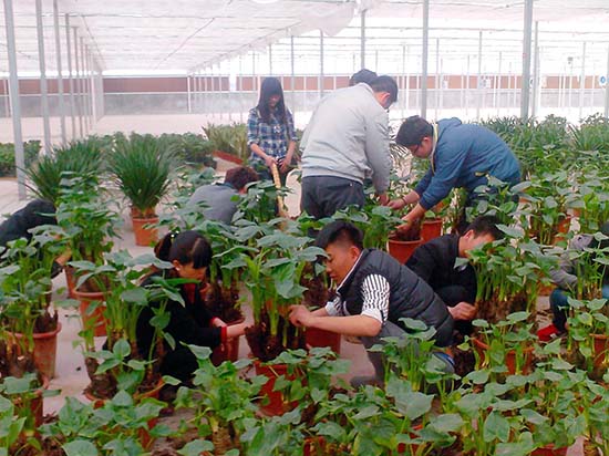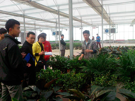 基地负责人向同学们介绍了实践基地的一些情况,包括运营方式、目前发展存在问题以及发展前景等。随后,同学们充分运用所学专业知识,帮助工作人员对展厅的一些花卉进行了养护处理。有些同学给一些顾客介绍了一些花卉的习性、养护特点以及适合摆放的位置等。同学们出色的专业知识受到基地工作人员以及来往顾客的一致赞扬。