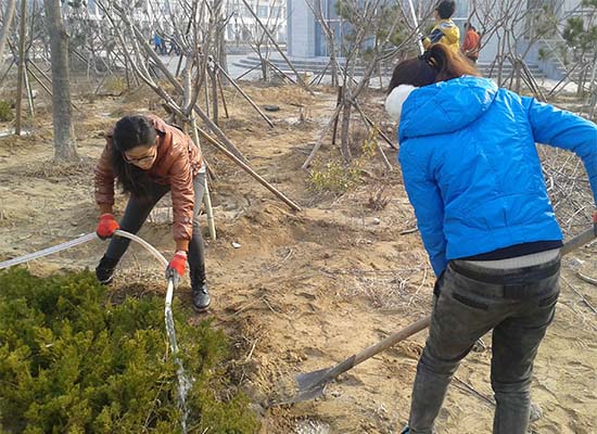 微微的冷风,阻挡不住同学们满腔的热情。同学们在辅导员老师的带领下,兴趣盎然地投入到植树活动中去。有的同学挖坑栽植,有的学生对已经栽植的树木浇水和修剪。同学们辛勤的劳动将为美丽的滨海校园增添一片新的绿色。(赵从凯供稿)