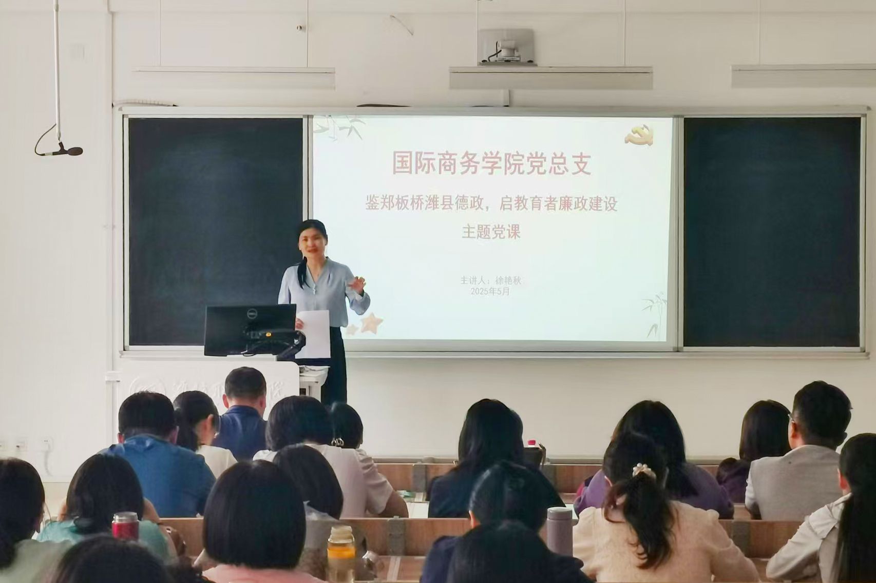 为深入推进党风廉政建设,增强党员教师廉洁自律意识,5月23日,国际商务学院党总支开展“鉴郑板桥潍县德政,启教育者廉政建设”主题党课宣讲活动。全体党员教师齐聚一堂,在历史文化的浸润中感悟廉政精神,筑牢思想防线。