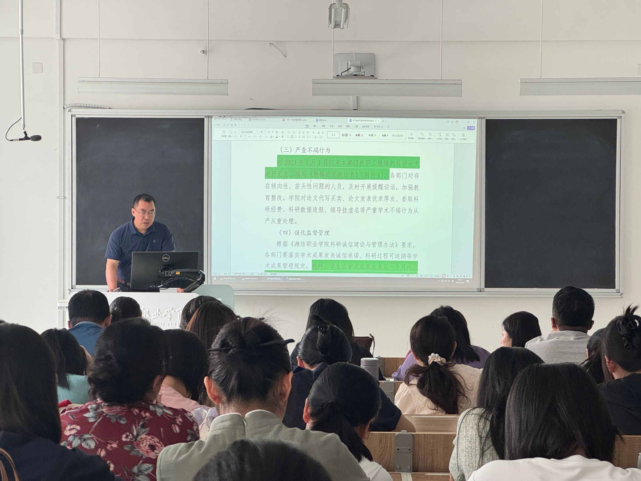 会上,分管教学负责人领学了《科研失信行为调查处理规则》和《开云体育APP下载网址科研诚信建设与管理办法》等文件,对科研诚信、学术不端行为界定等做了详细介绍。结合近年来科研失信典型案例开展警示教育,分析了学术不端的危害,阐述了各类学术不端的认定和处理办法,警醒教职工坚守科研诚信,严防学术不端。