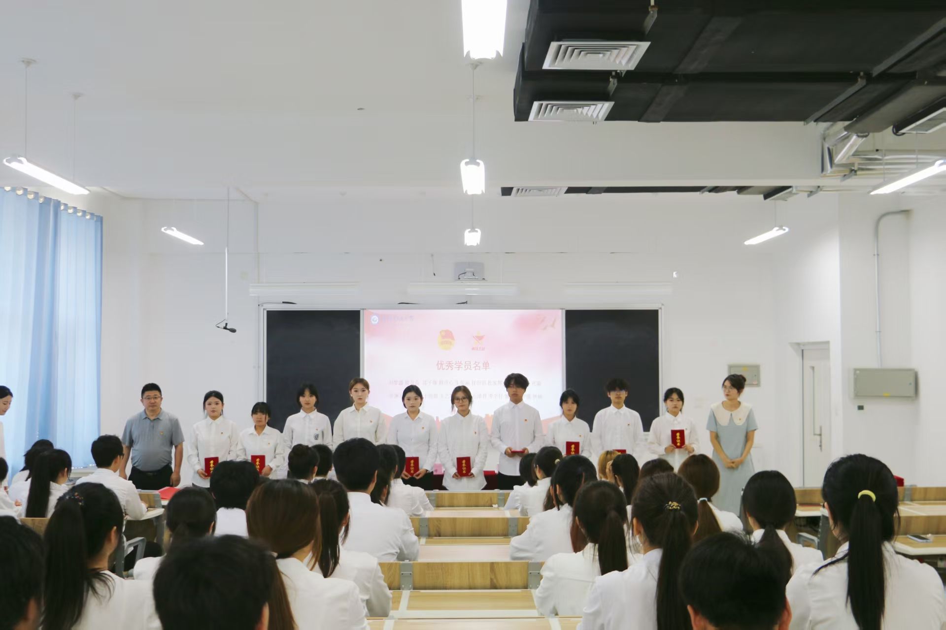 本次结业仪式在庄严的国歌声中拉开帷幕,全体师生肃立齐唱国歌。经营管理学院团总支书记宣读表彰决定,为优秀学员颁发证书。随后,青马工程优秀学员代表分享感悟,她表示培训期间的学习与成长仍历历在目,结业不仅是阶段总结,更是新征程的起点。未来,她将以“青马”精神为指引,践行青年担当,把所学化为行动,用青春力量书写时代答卷。