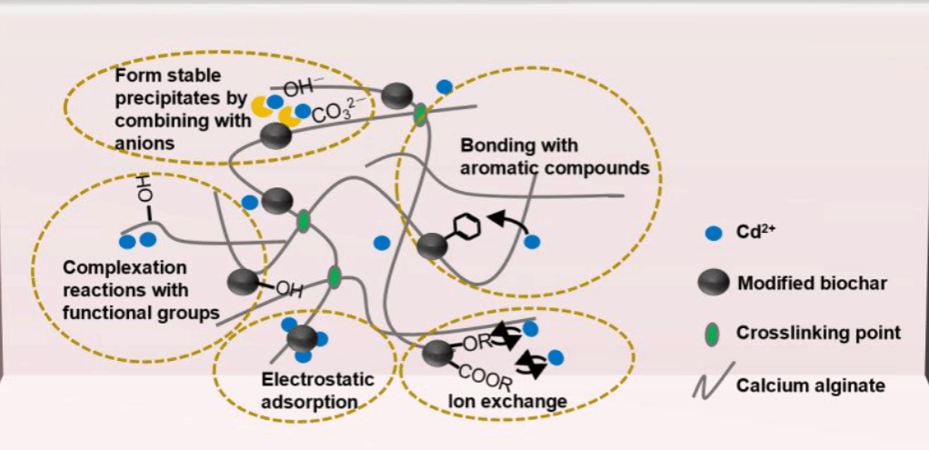 镉(Cd)是中国农业土壤中最常见的重金属污染物,给农作物安全带来了巨大风险。原位修复是一种经济有效的办法,能够改变土壤中镉的形态和迁移特性。本研究通过交联改性生物炭和海藻酸钙水凝胶制备了一种复合材料(MB-CA),并确定了其对镉的优异吸附性能。研究发现,MB-CA对Cd2+的吸附符合Freundlich等温模型,在pH值为4~6时表现出卓越的吸附能力。通过盆栽试验和田间试验发现MB-CA可使生菜中的镉离子含量降低。同时,MB-CA并未对土壤中微生物产生负面影响。这一研究成果将为土壤修复提供新的解决方案。(王玉莹 王园园供稿)