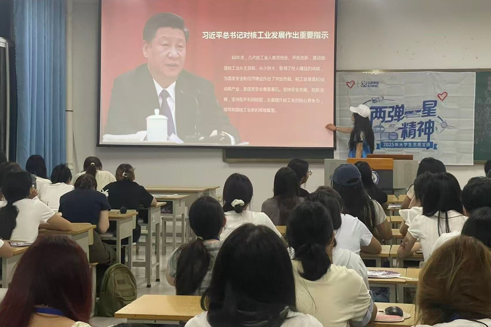 团课上,各班团支书组织同学们观看党领导核工业发展的视频,从“两弹一星”研制时期的艰难探索,到“华龙一号”走向世界的辉煌跨越,展现了党在不同阶段对核工业的战略引领。同学们深刻认识到党的领导是中国核工业从弱到强的根本保障,更加坚定地把爱国之情融入祖国建设的伟大事业中。同时,各班组织“中国核工业发展故事分享会”,讲述了“中国核潜艇之父”黄旭华隐姓埋名研制出我国第一艘核潜艇的故事,这种把国家利益放在首位和不断突破的创新精神深深打动了大家。同学们纷纷表示要以核工业人为榜样,在学习和生活中勇于探索、敢于创新,将个人成长融入国家发展大局,增强技能报国的使命感和责任感。