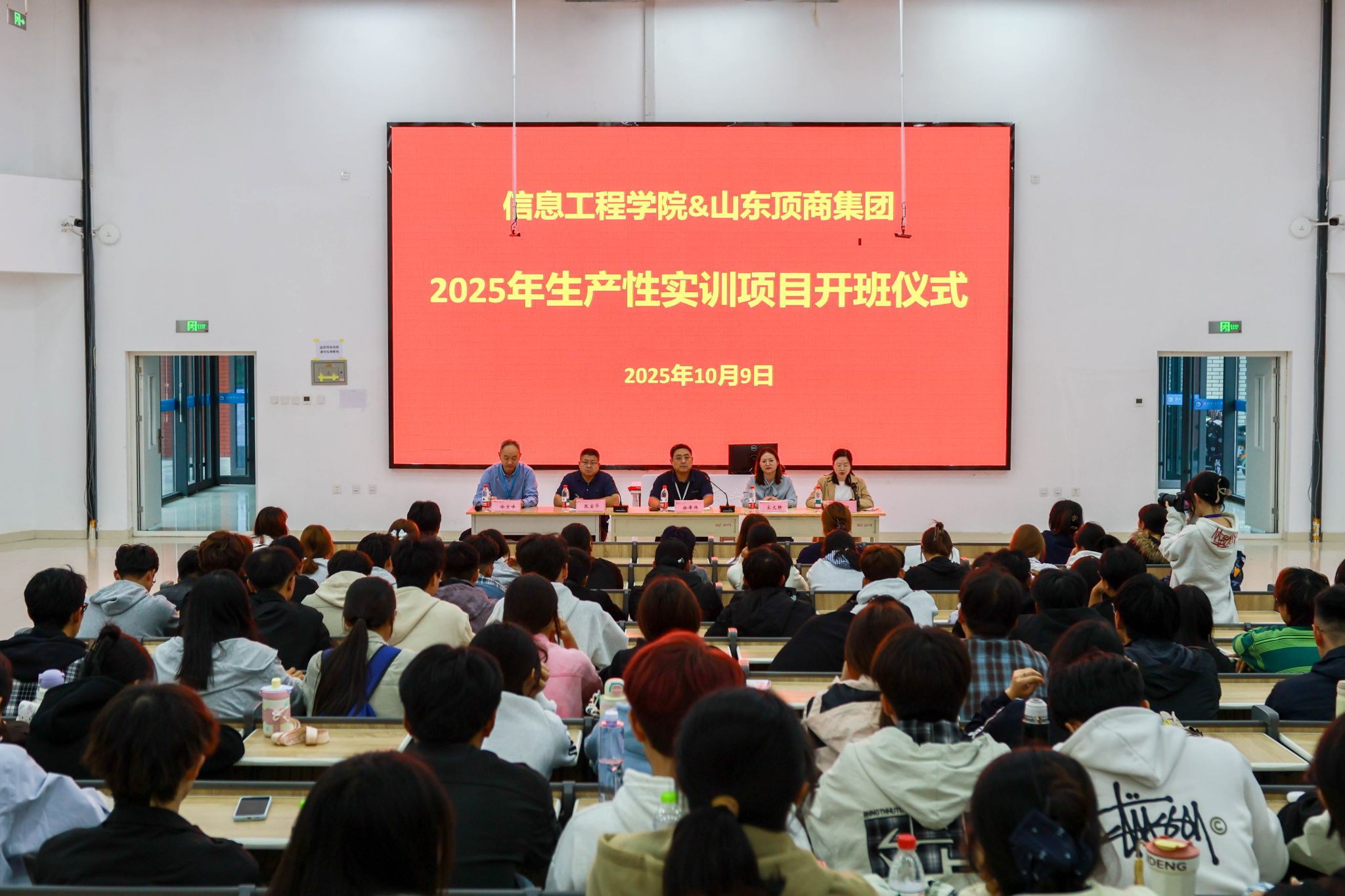 10月9日上午,信息工程学院举行校内生产性实训项目开班仪式。山东顶商集团业务经理宋文静、信息工程学院相关负责同志、电子商务专业骨干教师及100余名电子商务专业学生参加了开班仪式。