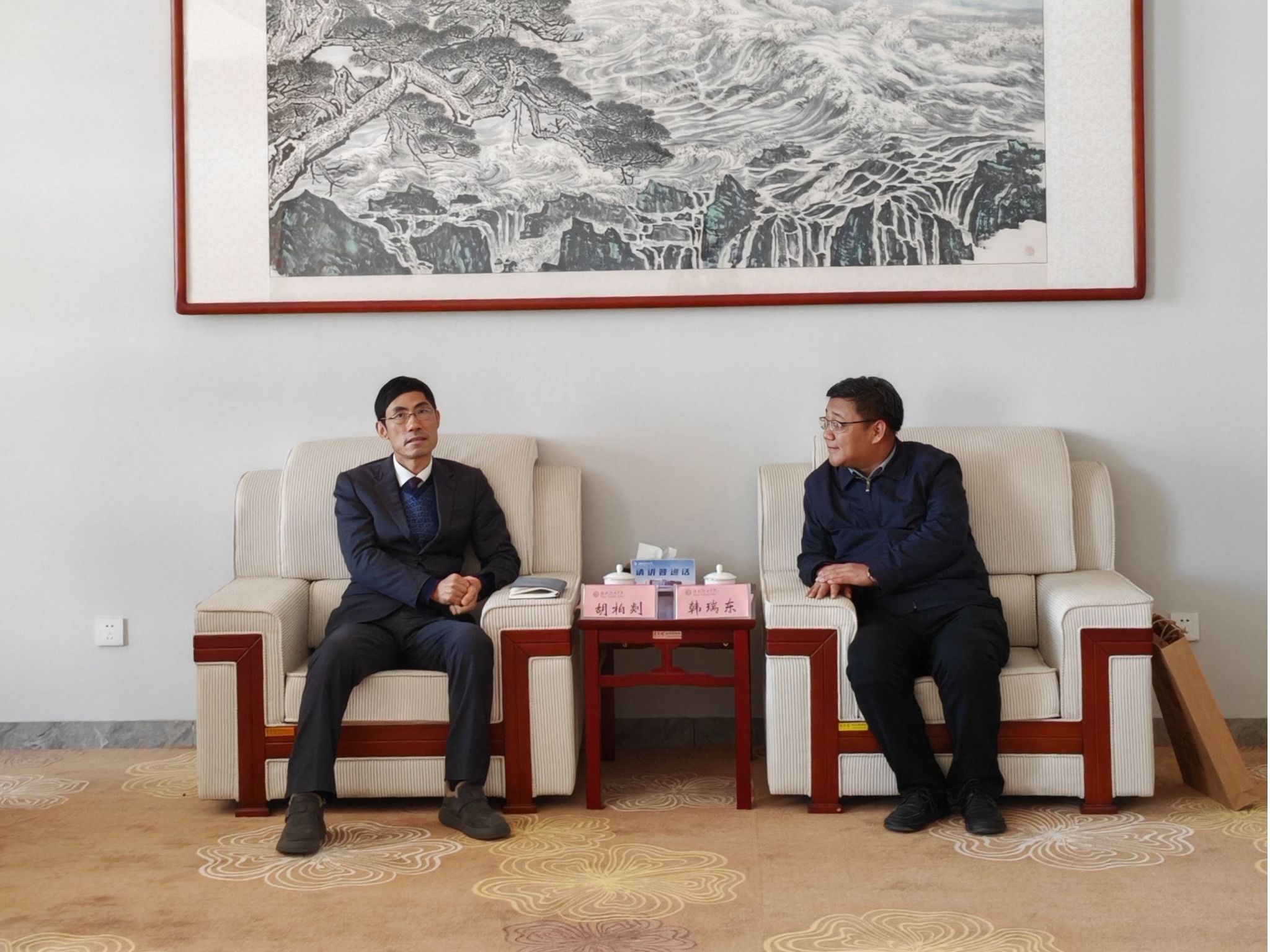 韩瑞东对胡柏剡一行表示欢迎,代表学院对新和成股份公司表彰大会表示祝贺,并感谢对学院事业发展的关心支持与信任。韩瑞东简要介绍了学院发展历史及办学情况。他表示,学院十分珍视与新和成的合作关系,愿继续与新和成秉持“资源共享、协同创新、优势互补、共谋发展”理念,在人才培养、科研合作、人才交流等方面深化合作,共同构建以技术创新和市场需求为导向的产学研协同创新体系,共建产教融合品牌,共同打造校企合作典范,为推动潍坊高端化工产业高质量发展贡献力量。