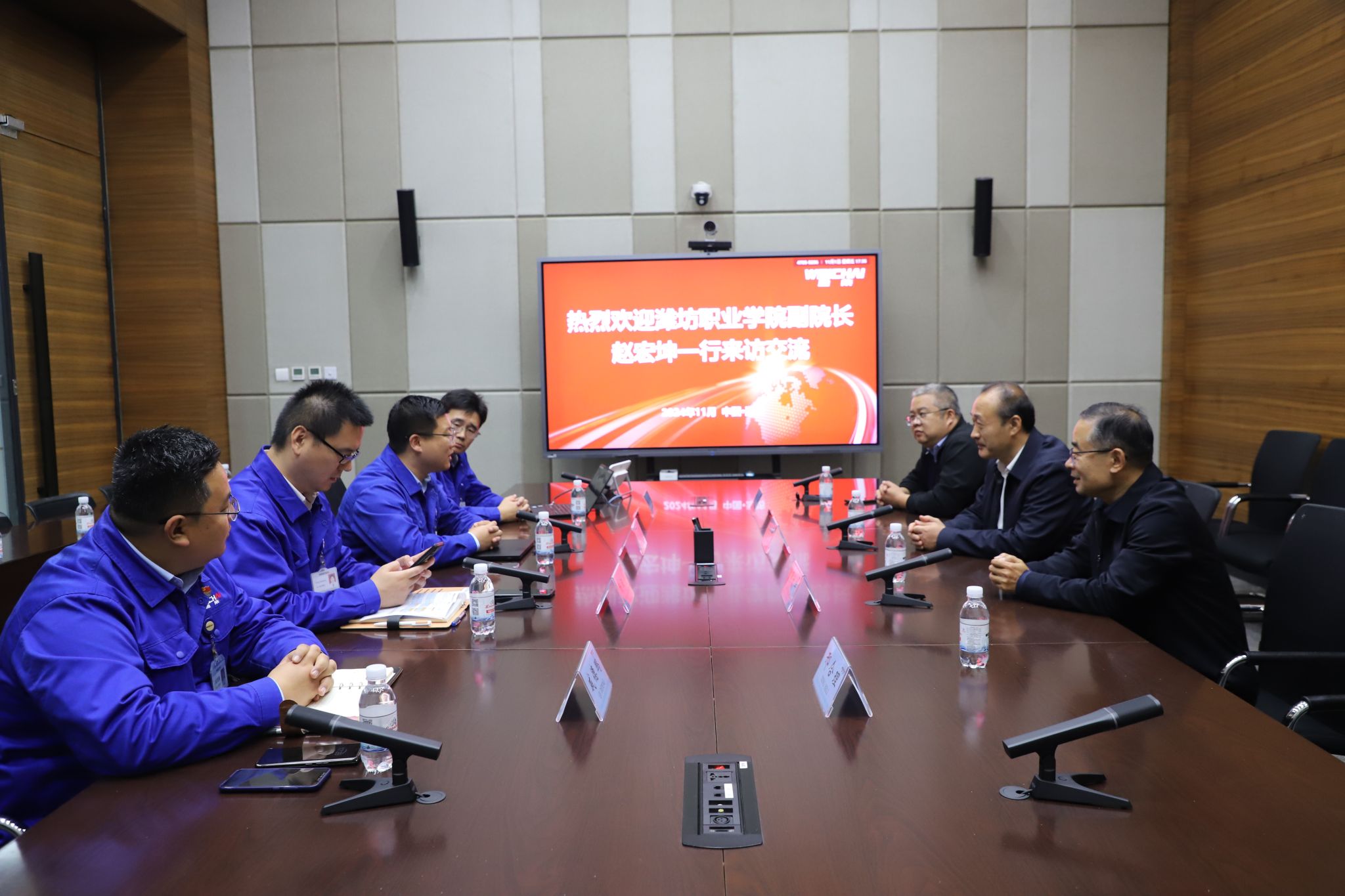 参观结束后,双方进行了深入的座谈交流。赵宏坤首先对潍柴集团的热情接待表示感谢,指出学院与潍柴集团通过多年合作建立了深厚的联系,为人才培养与输送筑牢了根基,双方不应满足于现状,要向着再扩大合作的方向迈进。在当前职业教育出海的大趋势下,共同深化产业学院的内涵建设,打造更具国际化视野的人才培养模式,为汽车产业的发展注入新的活力,让双方在更广阔的发展道路上携手共进。