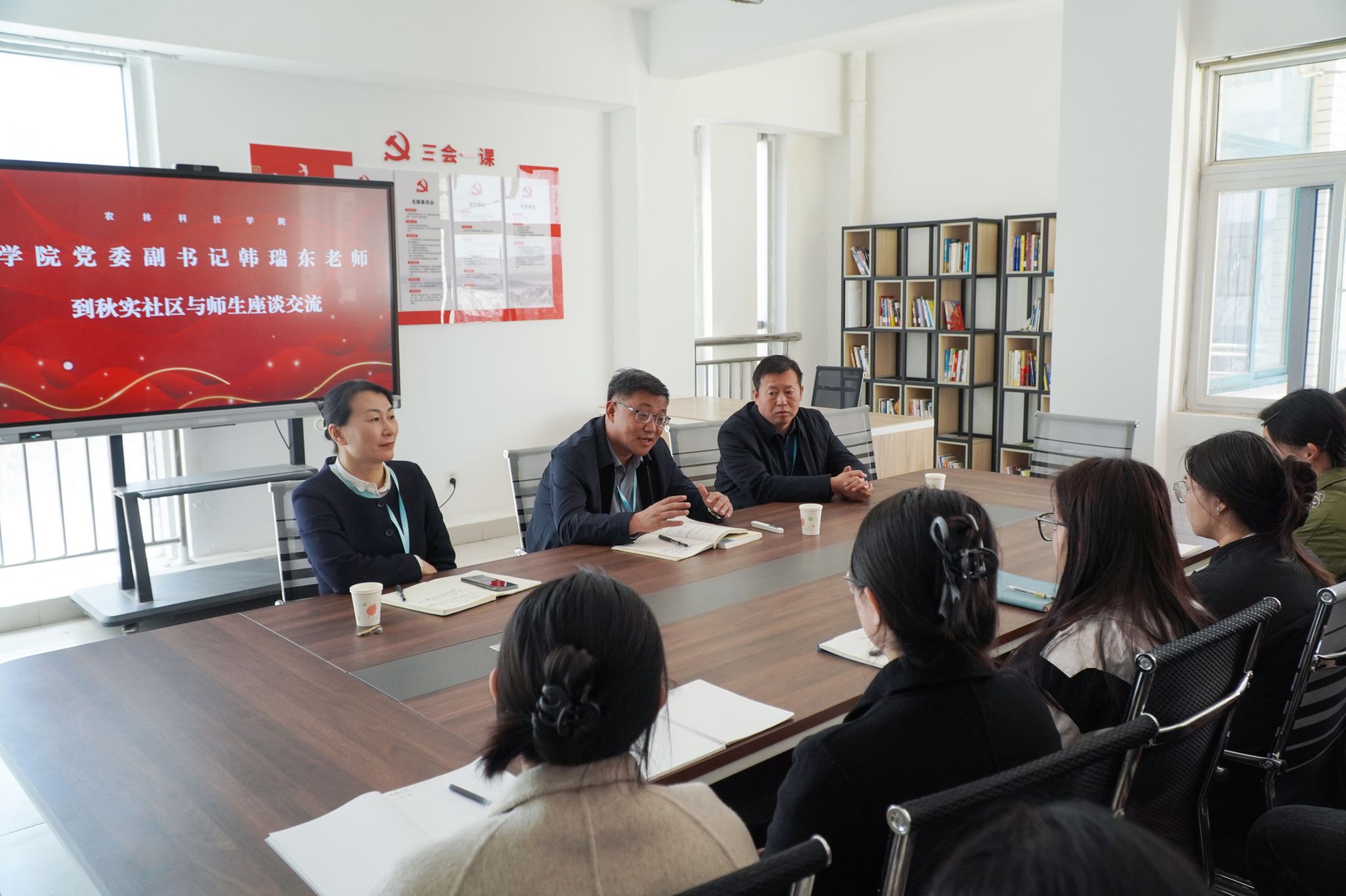 3月13日上午,学院党委副书记韩瑞东走进农林科技学院“秋实”学生社区,与青年学生面对面交流,倾听学生成长困惑,解答现实关切,并以“推进乡村全面振兴 打造齐鲁样板”为主题,结合自身求学与工作经历,为同学们讲授了一堂生动的思政课。学院党委委员、办公室(统战部)主任(部长)刘志艳,农林科技学院党总支负责同志、教师及学生代表参加了此次活动。