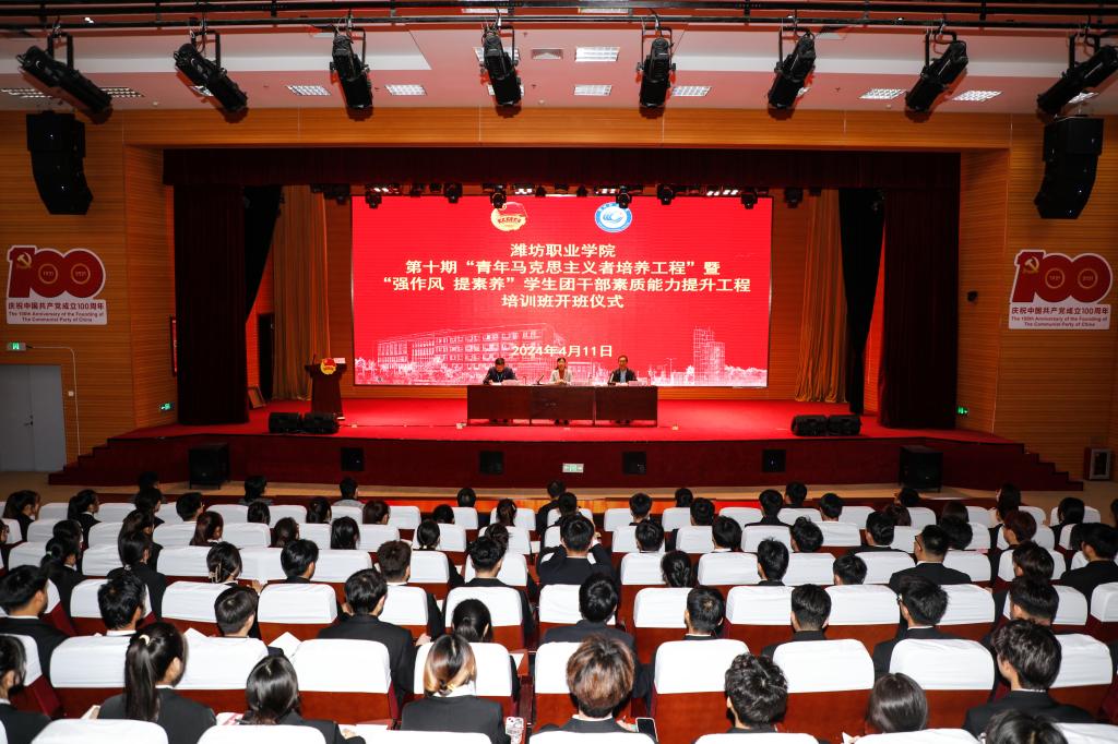 4月11日下午,学院在图书馆报告厅举行第十期“青年马克思主义者培养工程”暨“强作风 提素养”学生团干部素质能力提升工程培训班开班仪式。学院副院长陈美霞、学院团委负责同志、各二级学院团总支负责同志、309名培训班学员参加活动。